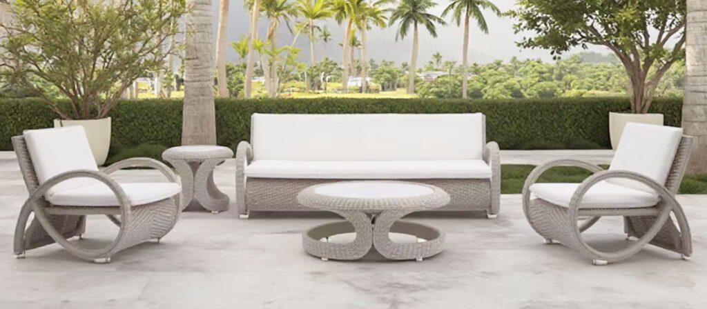 Aluminum has become a popular choice for modern outdoor furniture due to its lightweight nature and rust resistance. It’s easy to move and offers a sleek, contemporary look, often paired with glass or stone tops.