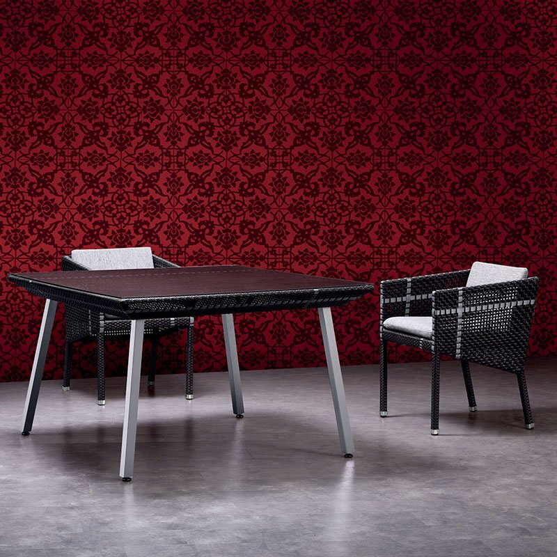 Elevate your outdoor space and perfectly complement your affordable patio chairs with this stunning modern table. While designed to fit seamlessly with a variety of seating, its distinct style makes it a focal point in any setting. This isn’t just a table; it’s a statement of contemporary elegance and practical design. Its black tabletop boasts a unique textured design, resembling multiple small, staggered rectangles, adding visual interest and sophistication.
