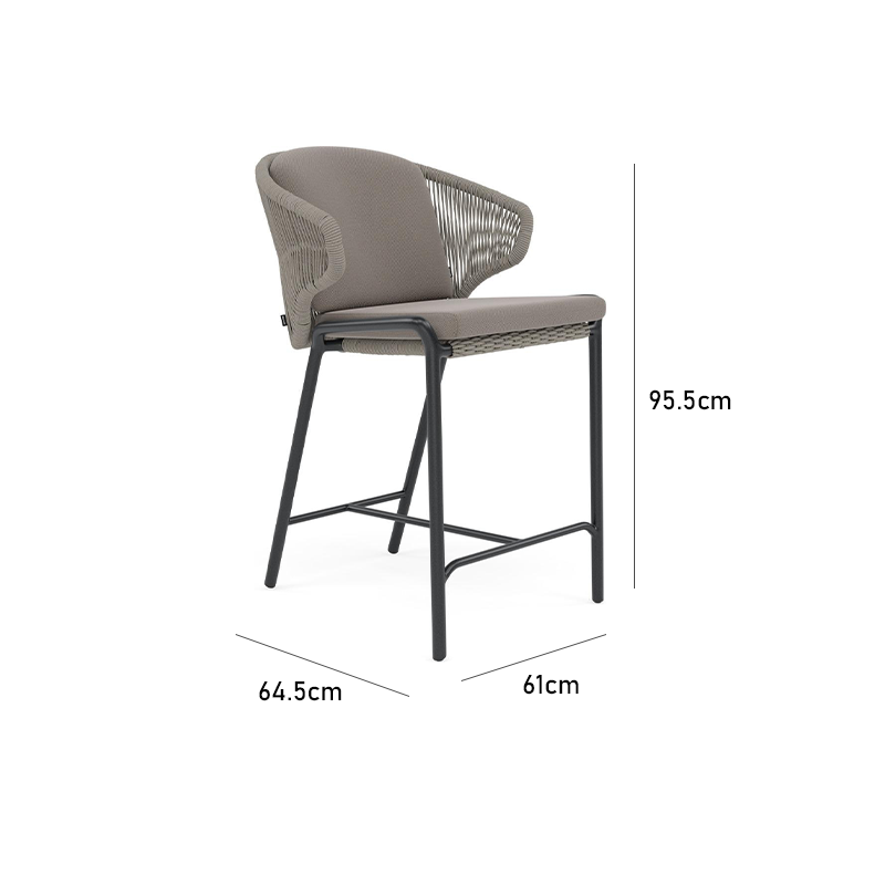 This All-Weather Wicker Chair is specifically designed for outdoor use, combining durability, comfort, and aesthetics. Featuring rope and metal frame elements, it offers a unique appearance while ensuring structural stability. The seat cushion materials are chosen to remain dry and comfortable even in humid conditions. This design makes the chair perfect for gardens, terraces, or beaches, and suitable for various weather conditions.