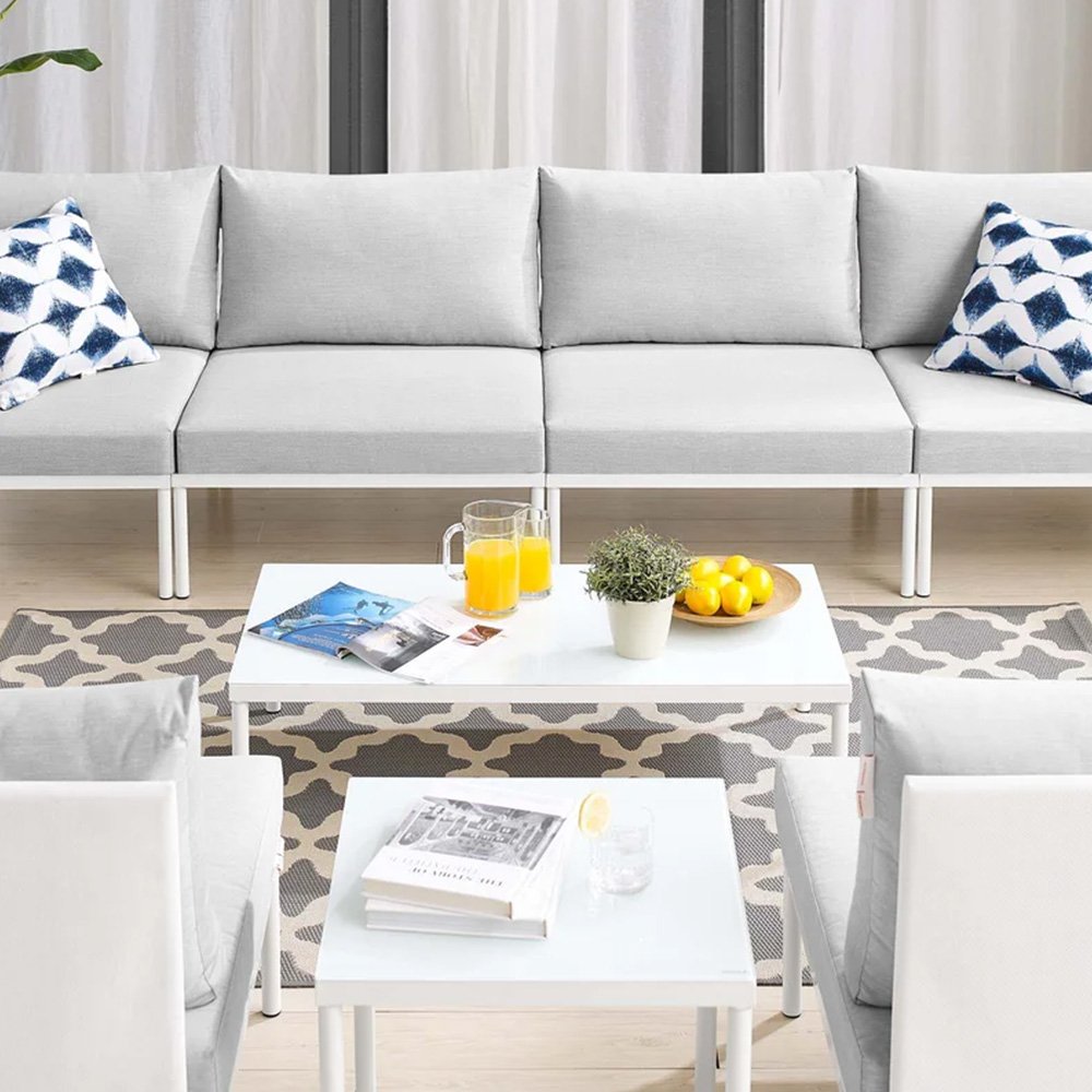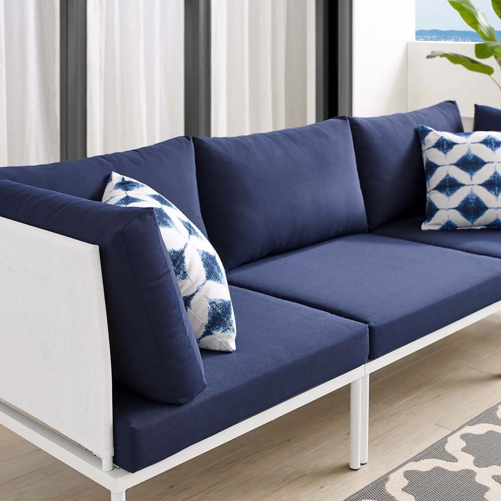 Enjoy both comfort and style with the Aluminum Outdoor Couch. Crafted with a robust powder-coated aluminum frame, this couch is designed for durability in outdoor environments. The rope-woven detailing adds a modern aesthetic, while the fast-dry foam cushions ensure a comfortable seating experience, even after exposure to moisture. With dimensions of 830 x 880 x 810mm, this couch is the perfect addition to your outdoor lounging area.