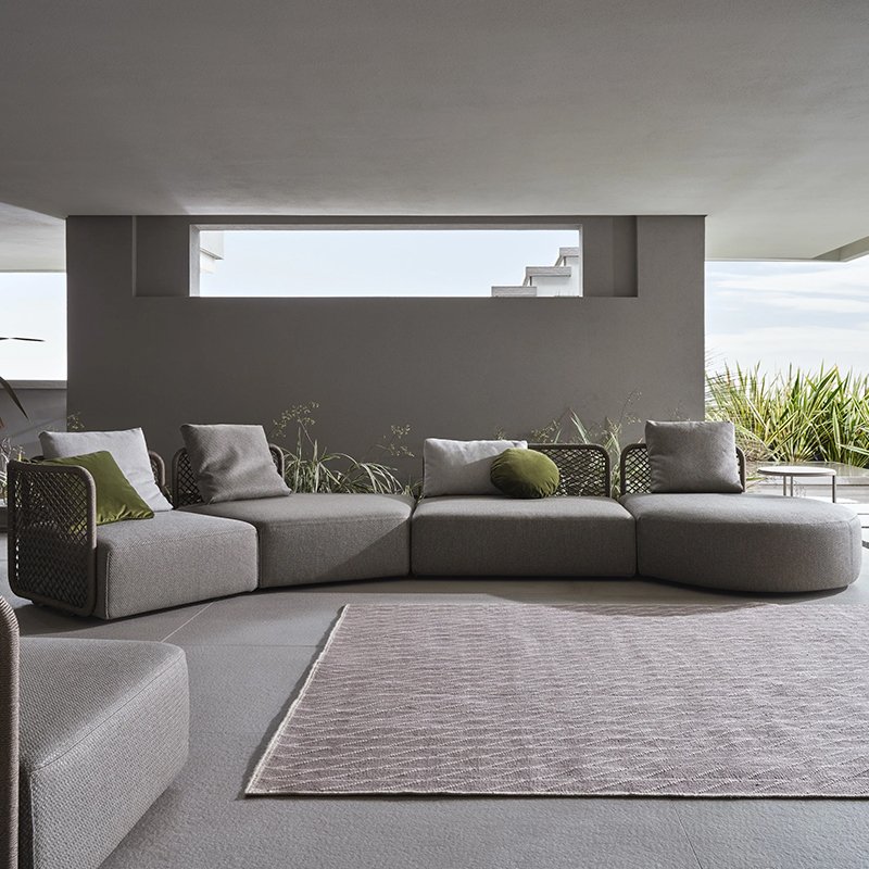 The Backyard Sofa Set offers versatile outdoor seating with the T-Pad modular system. Ideal for gardens, patios, and commercial spaces, this sofa can be customized to fit your style and needs, combining comfort and functionality in one.