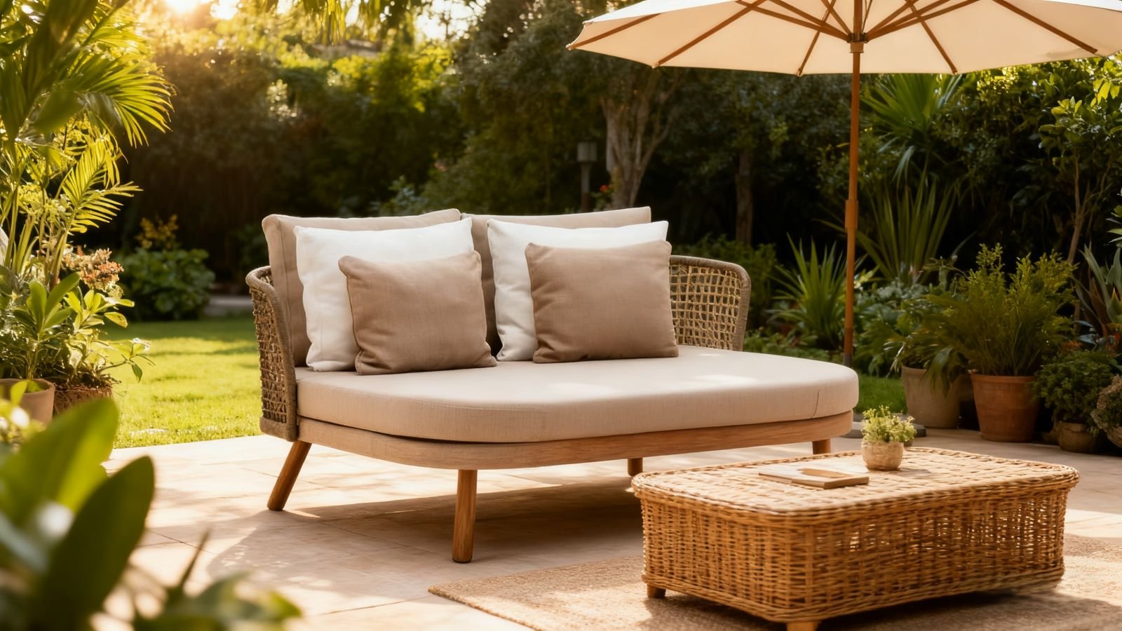 This double chair lounge showcases quality in both material and craftsmanship. The weaving part adopts delicate hand weaving technology, with three-dimensional and layered texture, which not only visually has a strong artistic sense, but also has a delicate touch; The soft cushion and pillow are made of skin friendly light brown fabric, with full filling and good resilience, providing gentle and strong support for the body when sitting or lying down; The leg structure is made of solid wood material, finely polished, with a warm and stable color. The overall design cleverly integrates natural elements with modern aesthetics, and the size is suitable for various spatial scenes