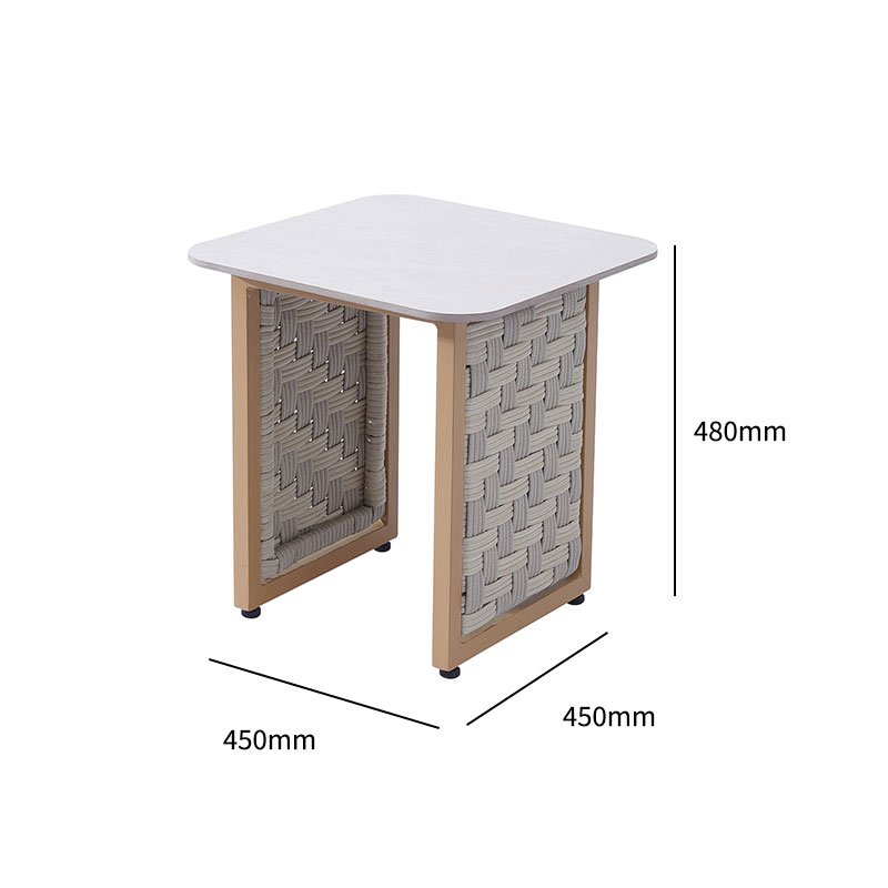 The sintered stone tabletop of the Coffee Table and Side Table is both stylish and durable. Resistant to scratches, heat, and stains, sintered stone offers a modern, sleek appearance while being easy to clean and maintain, perfect for an outdoor dining or lounging experience.