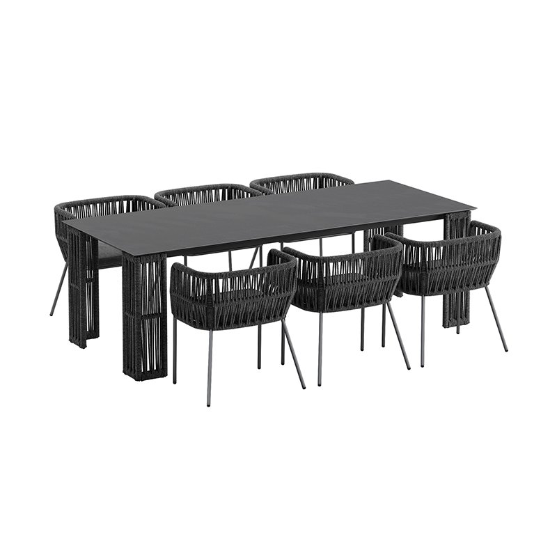 Bring elegance and strength to your outdoor space with our Large Square Outdoor Table, a stunning piece designed to complement any garden, terrace, or patio. Part of our exclusive collection at Outdoor Whale, this table features a unique design that blends functionality with timeless style. The standout feature of this table is its hawser-braided table legs, a distinctive hallmark of the collection that adds a touch of sophistication and durability.