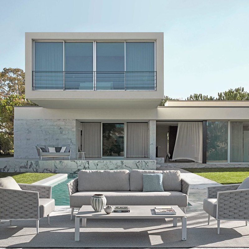 Outdoor Whale’s Modern Outdoor Coffee Table offers a sleek, weather-resistant design with customizable ceramic or teak tops. Available in multiple sizes, it’s the ideal choice for stylish, long-lasting use in any contemporary garden or patio setting.