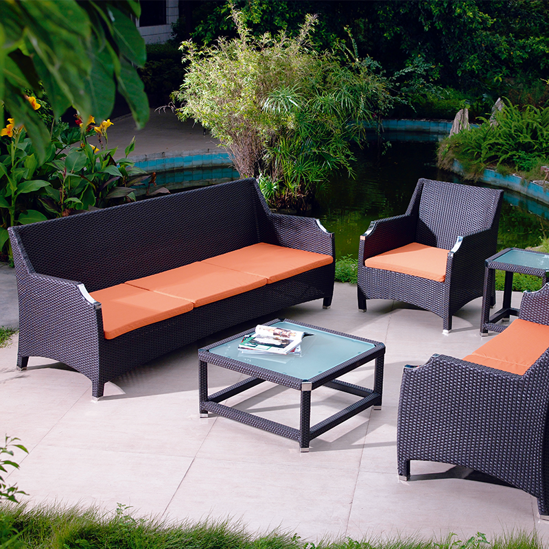 Optimize your outdoor space with our narrow outdoor sofa! This sleek, durable black woven chair features a sturdy build, comfortable armrests, and elegant aluminum trim. It’s the perfect compact solution for stylish, safe, and comfortable relaxation on any small patio or balcony.