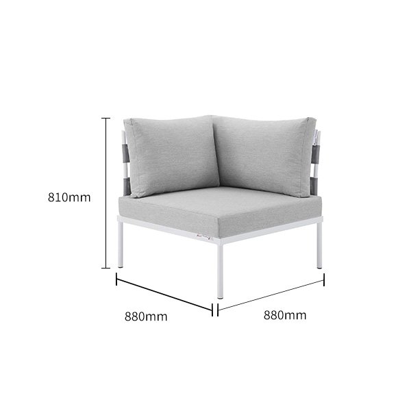This Outdoor Corner Sofa features an aluminum frame, quick-drying cotton, and waterproof sunny cloth. The aluminum frame provides strength while remaining lightweight, making the sofa easy to move and assemble. The quick-drying cotton filling is ideal for modern outdoor furniture, as it dries quickly in humid environments, reducing the risk of mold and odors. The waterproof sunny cloth covers protect the internal materials from moisture penetration, ensuring a comfortable sitting experience even in damp outdoor conditions. Designed for practicality and durability, this sofa is perfect for various outdoor settings.