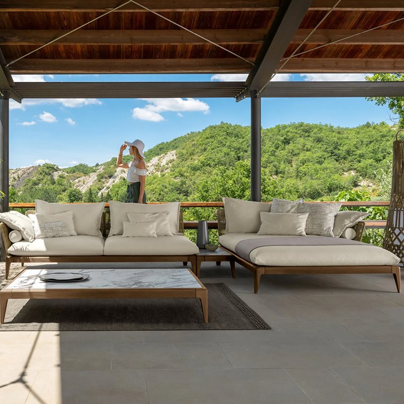 The Outdoor Garden Coffee Table offers exceptional versatility, seamlessly complementing your outdoor living area. Crafted with a sleek gres tabletop and a sturdy wooden base, it’s designed to enhance style and functionality. Ideal for pairing with the Teak Modular Sofa, this table adds an elegant separator between modules or stands confidently on its own, creating a refined outdoor ambiance.