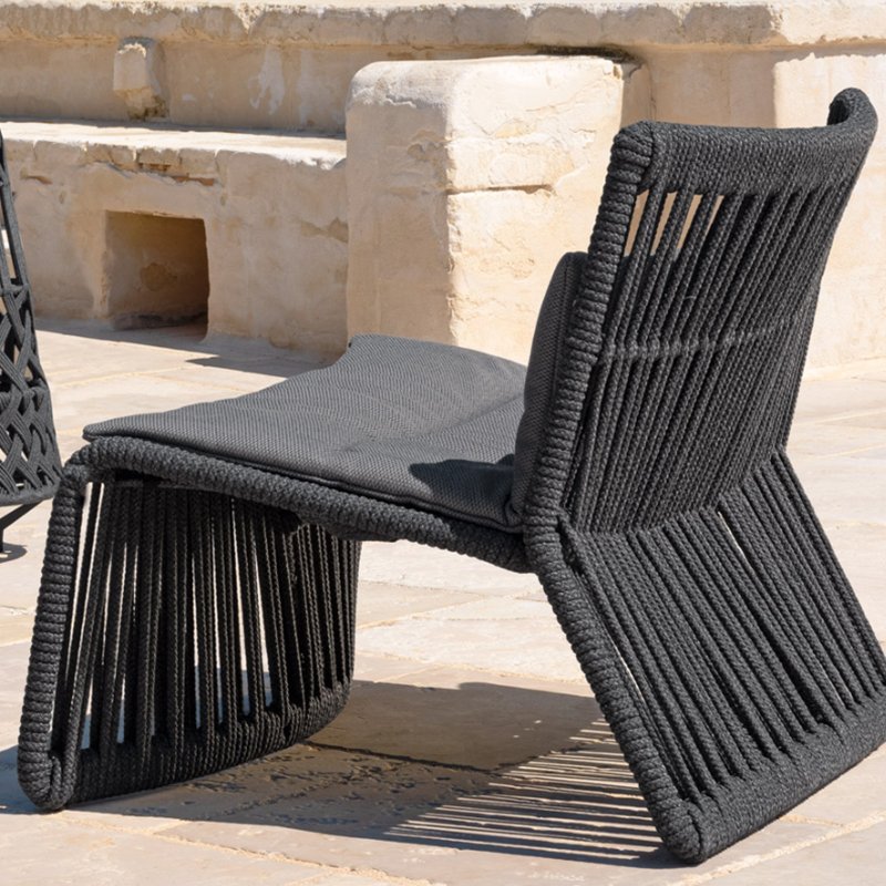 Infused with artistic craftsmanship and playful charm, these Outdoor Leisure Chairs strike a perfect balance between design expression and functional comfort. Built on a robust steel frame wrapped in braided hawsers, this piece stands out for its unique textural quality and resilient structure. The seat cushion’s slim silhouette offers a fresh contrast to more conventional designs, enhancing the visual appeal while inviting you to unwind in effortless style.