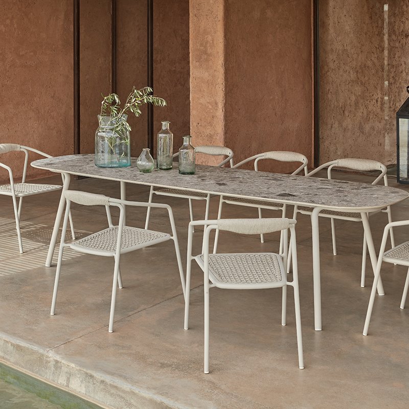 Enhance your outdoor living area with the Oval Outdoor Coffee Table, a beautifully designed piece that combines slim elegance with soft, warm tones. Ideal for those who appreciate subtle sophistication, this table is a perfect match for creating a natural, intimate dining experience or simply adding a touch of refinement to your garden, patio, or terrace.