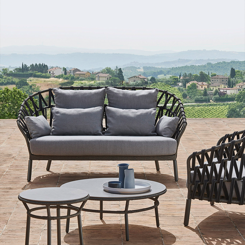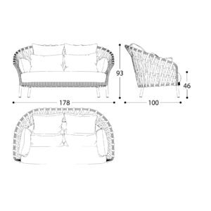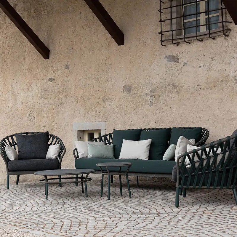 The Rope Corner Sofa Garden combines handmade acrylic fabric weaving with a powder-coated aluminum frame for a stylish and durable outdoor seating solution. Perfect for your garden or patio, it offers both comfort and elegance in one piece.