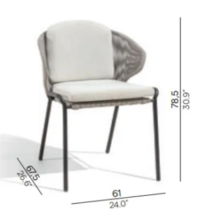 The Rope Dining Chairs feature wrap-around rope backrests and modern design for an elegant outdoor dining experience. Optional backrest cushions provide comfort for extended gatherings, while durable materials ensure long-lasting beauty and style for any outdoor setting.
