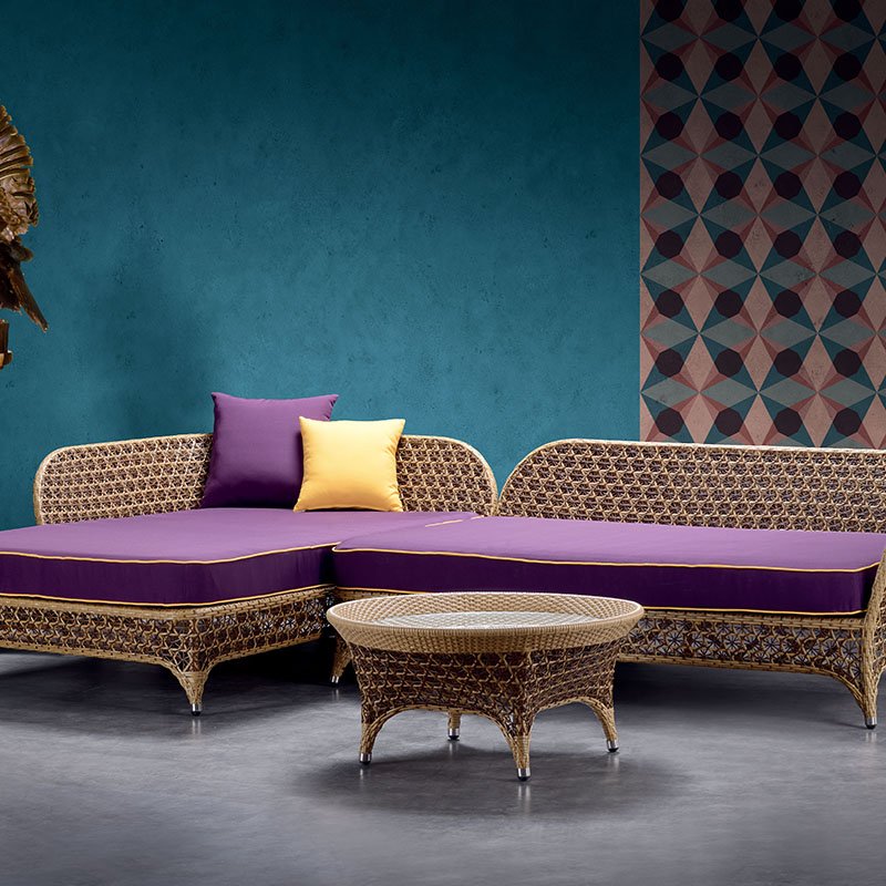 Its supporting structure features a beautifully curved design crafted from rich brown woven material, adding an element of natural elegance.