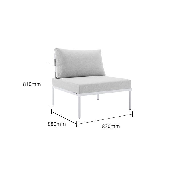 The Single Cushion Outdoor Sofa combines a durable aluminum frame with decorative rope detailing and quick-dry waterproof cushions. Built for both comfort and style, it’s the ideal all-weather seating solution for gardens, patios, and poolside spaces.