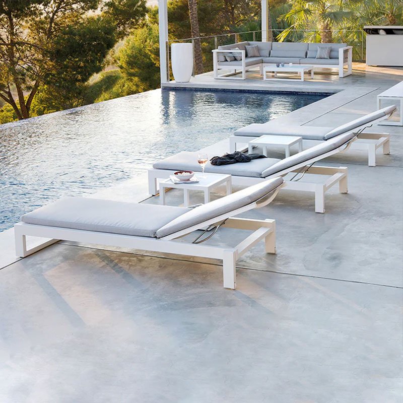 This Small Chaise Lounge offers sleek lines, durable aluminum alloy, and weatherproof comfort. Its modern design fits small outdoor areas perfectly, delivering both elegance and relaxation. A smart solution for patios, balconies, or boutique resorts.