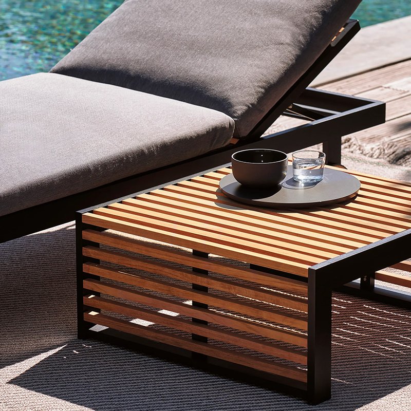The Teak Patio Table effortlessly combines the natural beauty of teak wood with the modern elegance of aluminum, creating a piece that exudes both warmth and sophistication. The rich chestnut tones of the teak tabletop complement the sleek anodized aluminum frame, resulting in a harmonious blend of organic warmth and industrial chic. Whether placed on a patio, terrace, or garden, this table enhances your outdoor space with its timeless appeal.